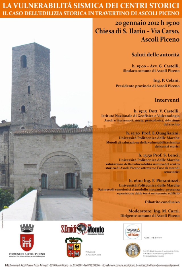 Questa voce è stata pubblicata in In primo piano e contrassegnata con Architettura, Ascoli Piceno, Comune di Ascoli Piceno, Conferenza, Edilizia storica, Politecnico delle Marche, Provincia di Ascoli Piceno, Tesi di laurea, Travertino, Vulnerabilità sismica. Contrassegna il permalink.