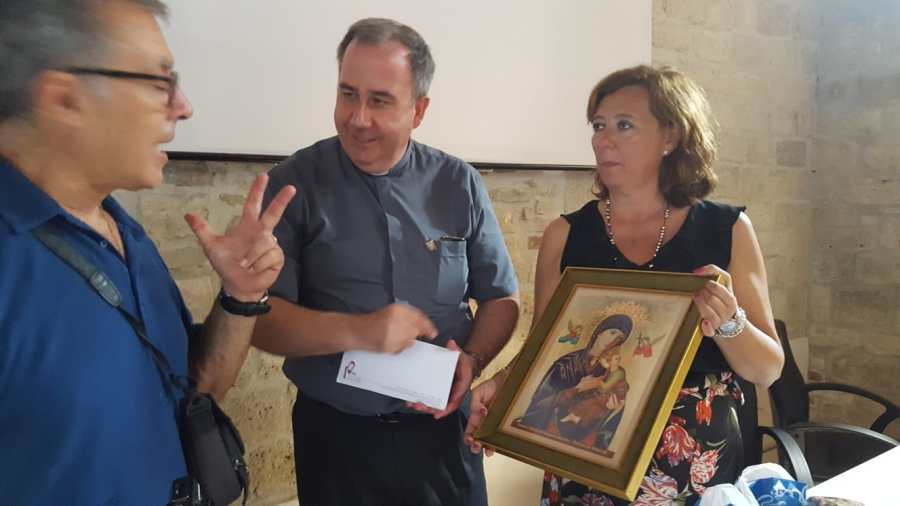 Scambio di doni: un’icona mariana viene offerta all’associazione dal Parroco di San Andrés e dall’Alcaldesa di Almoradí.