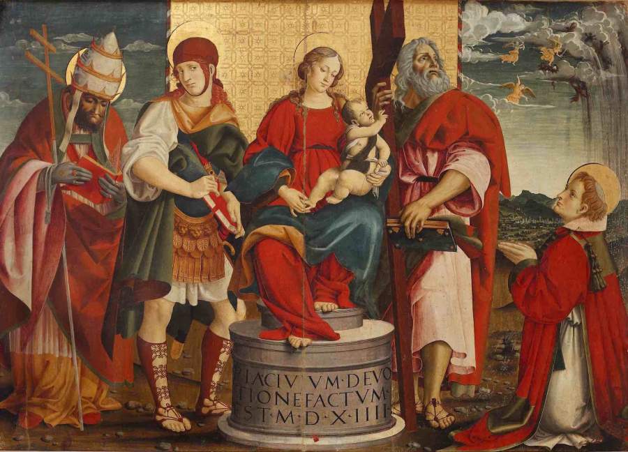 C’è perciò da chiedersi: quali e di che tipo furono le fonti di Cola dell’Amatrice? Considerò probabilmente le più antiche raffigurazioni di Cristanziano esistenti a Lisciano ed a Paggese, datate al secolo precedente e forse anche consimili altre. Ma non è che Cola conobbe anche un testo narrativo, oltre che orale, anche scritto? Mi sembra indubbio che quella del 1514, la più che stupenda trasposizione figurativa in San Vittore, fosse espressione più di un rilancio del culto per Cristanziano, favorito soprattutto da una committenza ben evidenziata a margine del dipinto stesso. Insomma, il popolo lo conosceva. Vedete, Egli è detto uno dei compagni di sant’Emidio e in questa pittura Emidio non c’é. In Ascoli si comincia a parlare di “compagni” del grande Emidio in due importanti circostanze. La prima è quella del testo scritto del prete Valentino, o a questi attribuito, della Vita di Sant’Emidio; testo ormai sicuramente datato al secolo XIV. Per quanto già accennati nel consimile testo del secolo XI, in quello trecentesco incontriamo Euplo, Germano e Valentino stesso. Ancora nel Trecento, e sarebbe la seconda volta, precisamente nel 1377, quando si pubblica lo Statuto cittadino (certamente sulla base del precedente duecentesco), si menziona espressamente Benedetto, anch’egli martire, quale compagno di Sant’Emidio. Di Cristanziano si tace! Allora, in una versione diremmo ulteriormente aggiornata, ma anche necessariamente più tarda, Cristanziano costituirebbe uno di quelli che, adesso, sono i cinque discepoli martiri del santo proto vescovo Emidio. Notiamo ancora che non solo Egli sarebbe, a differenza degli altri, di patria ascolana, ma costituirebbe il primo tra i cristiani ascolani ad abbracciare la causa di Emidio. Tanto basta per intuire che forse potremmo essere di fronte alla costruzione di un mito cittadino! E il Cristanziano della tavola di Cola dell’Amatrice è il diacono martire illustrato in questa tradizione, che ci apparirebbe enucleatasi tra il secolo XIV e lungo tutto il Quattrocento. Per noi, ripeto, diventa essenziale cercare di isolare il nucleo iniziale della storia, da cui il racconto prese le mosse, per arricchirsi man mano di altri particolari, ma ben avvertendo – come ho cercato di dire fin qui – che gli Ascolani, o chi per loro e con loro, con Cristanziano, a partire dal nome, potettero attingere a materiali agiografici già in circolazione da molto tempo. Quella di Cola dell’Amatrice, allora rappresenta una stupefacente sintesi, sublimata in un testo figurativo molto efficace, di quella tradizione ascolana e si tratta di una raffigurazione sulla quale dovremmo ulteriormente riflettere, perché, a ben vedere, ci dice molte altre cose di quella tradizione che essa richiama e in gran parte rivela. Ed è a questa tradizione, in modi e forme del tutto originali, che converrà esaminare nel dettaglio, per non dire con un piglio innovativo tutto personale, si dedicò, come accennai, in pieno Settecento il ‘nostro’ Marcucci.